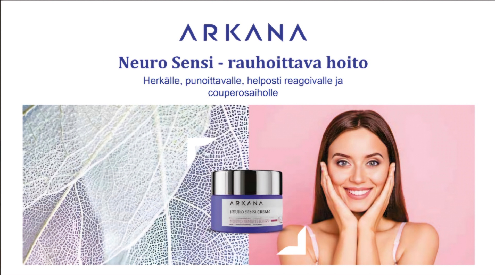 Ammattilaisen käsissä – Arkana-kasvohoidot ovat paljon enemmän kuin tavallista ihonhoitoa. Ne perustuvat neurokosmetiikkaan, joka hyödyntää hermoston ja ihon välistä vuorovaikutusta, kuten vaikuttavat hermosignaaleihin, vähentävät ihon stressireaktioita sekä tukevat kollageenin ja elastiinin tuotantoa. Aktiiviaineet, kuten GABA ja NANA, rentouttavat kasvojen lihaksia, rauhoittavat herkkää ihoa ja tukevat sen uudistumista.