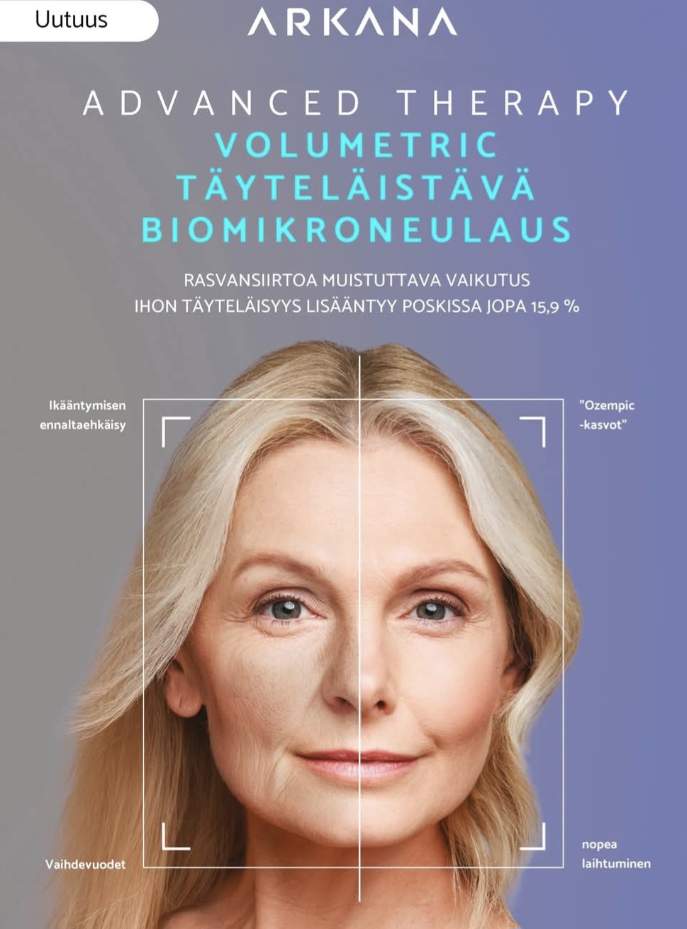 Arkana Volumetric on edistyksellinen kasvohoito, joka palauttaa ihon täyteläisyyttä ja selkeyttää kasvonpiirteitä täysin ilman injektioita. Hoito perustuu ihon oman rakenteen vahvistamiseen ja volyymin lisäämiseen. Hoidossa käytetään aktiivisia ainesosia, jotka stimuloivat solujen toimintaa, kosteuttavat syvältä ja tukevat ihon rakennetta. Lopputuloksena iho näyttää täyteläisemmältä, napakammalta ja kasvonpiirteet selkeämmiltä.